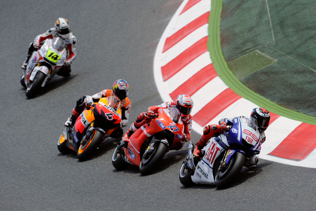| Catalunya is a brilliant circuit, usually blessed with sunshine and a grippy surface. Though obviously the temperature that can get a little on the high side and as a result, grip can occasionally be wanting. And tyres can go off rather quickly as well, as they basically melt. However, the circuit itself, while it has no standout features, always seems to produce great racing. Last year's visit here gave us possibly the best race ever between three worthy contenders, all of whom ended up on the same points at the end. Now this year that's not going to happen. One of the three - Valentino Rossi - is still recovering from injury while another - Casey Stoner - has yet to really start his season properly. But the third - Jorge Lorenzo - is on home territory and is on something of a roll as far as his race performance is concerned. He also comes here with a massive forty-seven point lead, which while being far from unassailable is one heck of a cushion to be able to rely on.