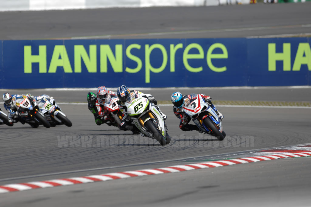 Michel Fabrizio decided to join the parade of crashes and lost his bike on the first turn of lap five, however he managed to re-start and get back into the race. Max Neukirchner then crashed at turn eight and re-joined but entered the pits soon afterwards, disappointing for him at this, his only home round of the season.