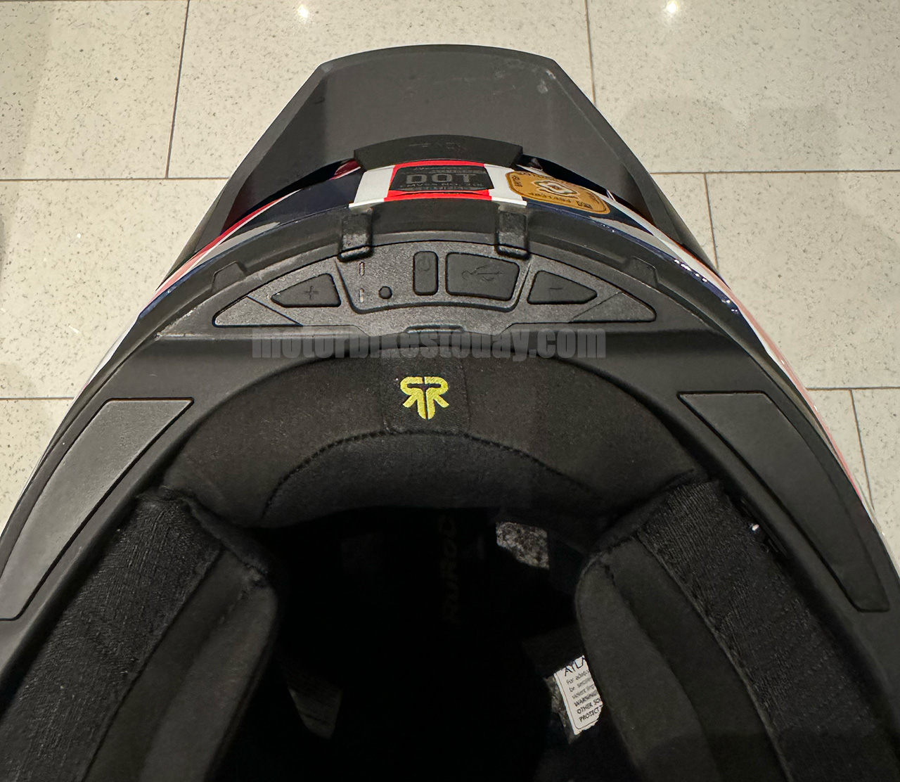 Installation is really very straightforward. Unclip the blanking panel on the back of the helmet, attach the preinstalled leads to the main unit and slide that in. It clicks into place and is secured by magnetic catches. Then find the other ends of the leads, which are neatly channeled in the liner, connect the earpieces and microphone, make sure all the padding is still in place and you're there.