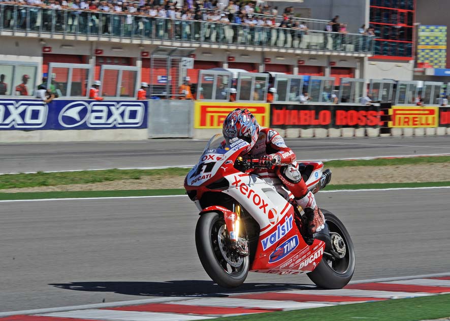 Warmup saw the departure of Johnny Rea who, despite remounting after crashing, transpired to have hurt himself a little more than it appeared, with current reports suggesting his collarbone and scaphoid both in need of attention. Ruben Xaus crashed as well, while Carlos Checa, Lorenzo Lanzi and Leon Haslam went quickest overall.