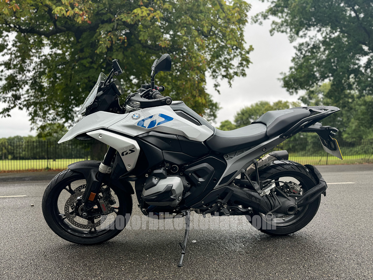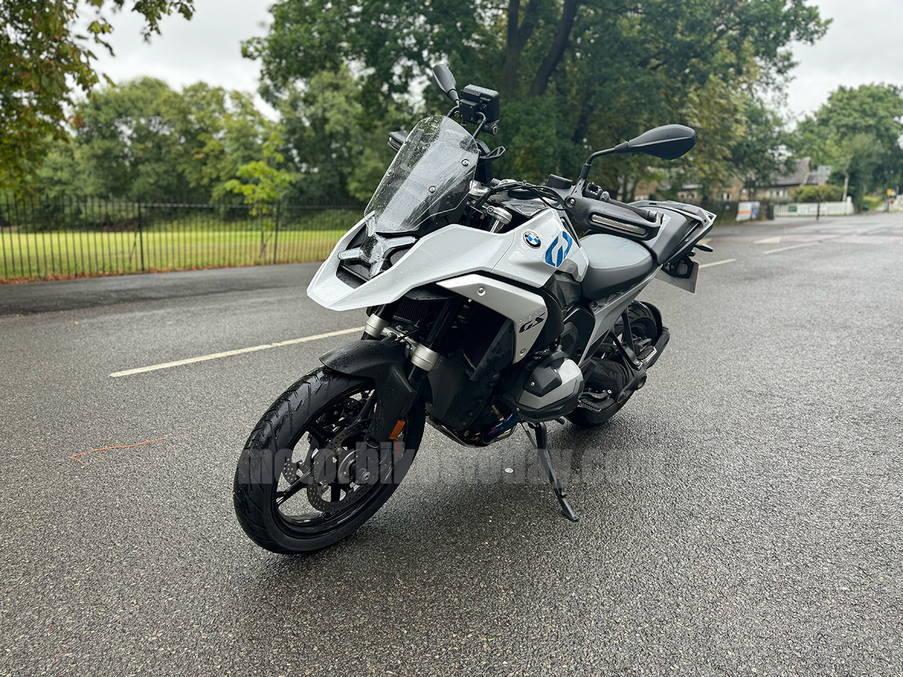 I really like it. It's easy to ride. It's comfortable. It's narrow enough to ride that I don't feel as though I'm about to give birth getting my legs around it. It's still a GS and it still feels like a GS, but it feels better in every way. A brief bit of exploration on some private ground says that the performance is more than adequate and handling is much better than it has any right to be. Even though it's raining, the GS takes everything I chuck at it without breaking a sweat. Including a bit of soft roading when I discover one of my favourite short-cuts was dug up.