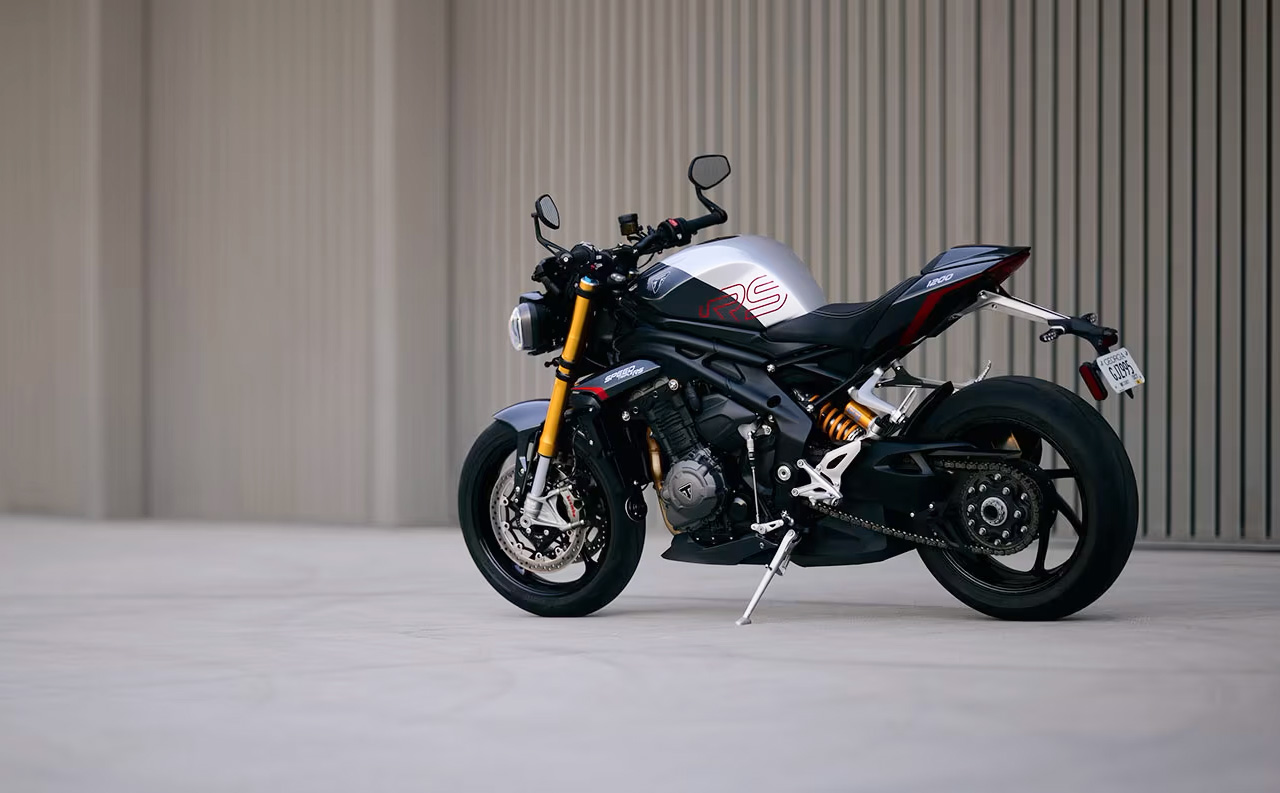 Nowadays such hooliganism is frowned upon, and the 2025 Speed Triple is blessed with some very clever electronics that curtail unintended wheelies. That's probably A Good Thing, because this current generation of Speed Triple is tiny. Apart from the engine. Which is both large and strikingly muscular. It's deceptive, because from not much distance at all this looks like a big bike. It has that stance, that presence. It's only when you get close that you realise it will have to stand on tippy toes to chin you. But you kind of know that it will, given half a chance.